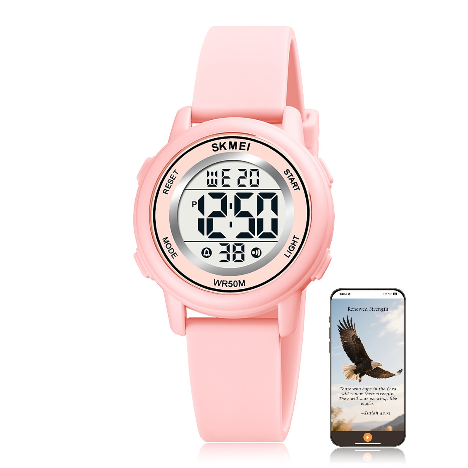 - Innovative NFC Technology:Embedded with NFC chip, no app installation required on smartphones. Simply enable NFC function and tap the children's watches with stopwatch to display personalized Bible verses, guiding children's daily spiritual growth.