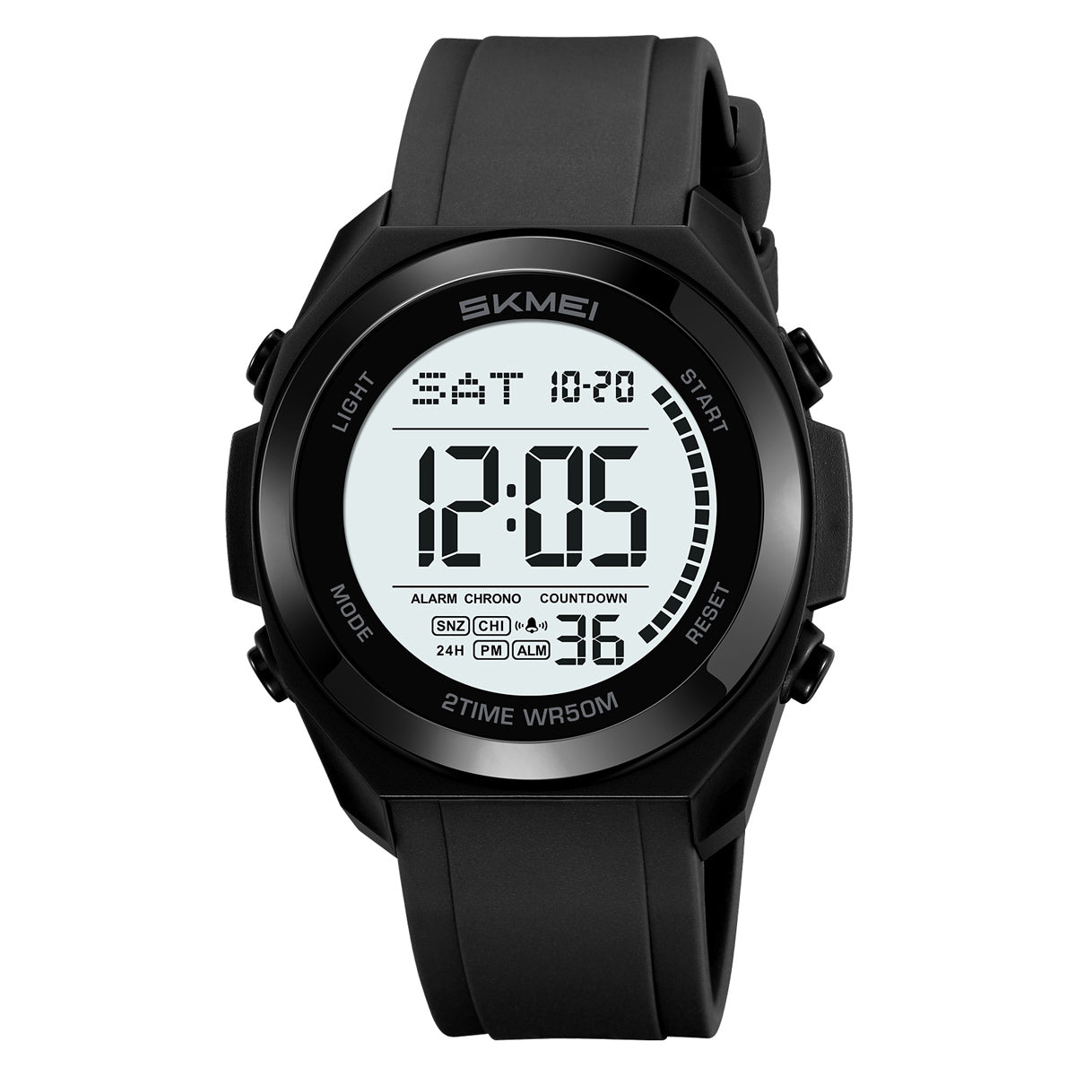 - Multi functional digital watch: dual time, stopwatch timing, date, timer alarm, day of the week, EL night light, hourly clock, 12/24-hour clock, countdown.