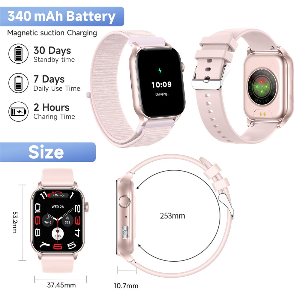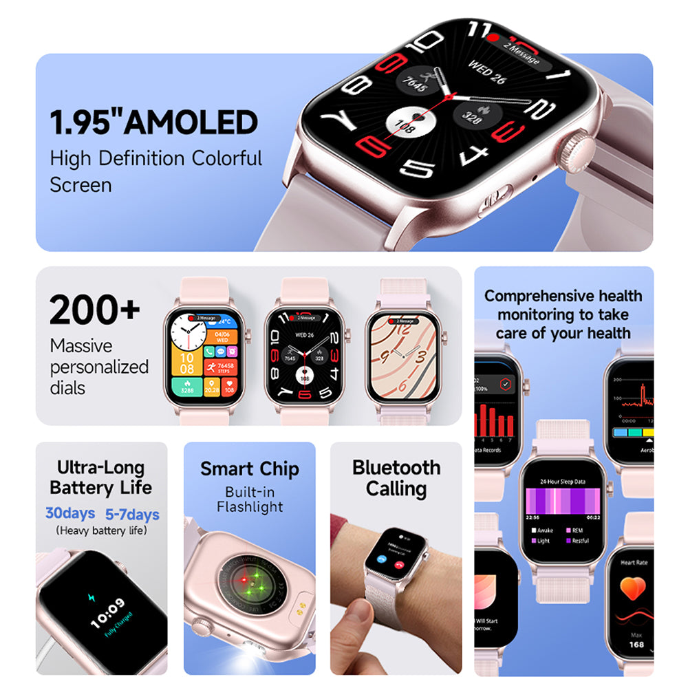 Brand: BOZLUN Screen size: 1.952 inches_ AMOLED Resolution: 410*502 System requirements: android 4.4 iOS10.0 Bluetooth version: 3.0/5.2 Main control chip: REALTEK8763E Gsensor: STMicroelectronics_3-axis pedometer sensor LIS2DOCTR Heart rate: VC30F-S Battery capacity: 340mAh high capacity and high pressure Memory: RAM_578KB+ROM_128Mb Standby time: about 45 days Battery life: about 5_7 days Charging method: magnetic charger Motor: built-in vibration reminder Waterproof level: IP67 Material: plastic + spray oil Watch size: 53.2*37.45*10.7mm Strap width/material: 22mm/liquid silicone strap |